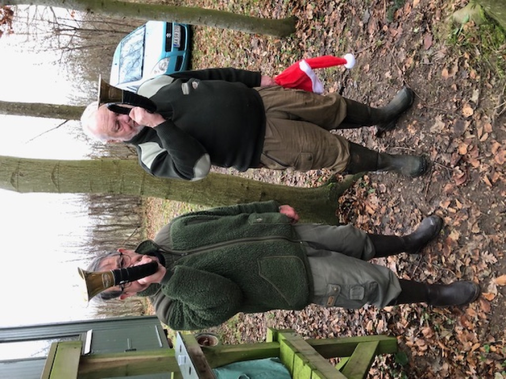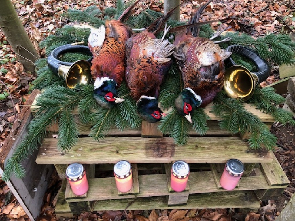 Efter talerne blæste jagthornsblæserne hyldest-signalet "Hallali" og ”Frokostsignalet” som optakt til at man nu var velkommen til at forsyne sig ved vildtbuffet´en.