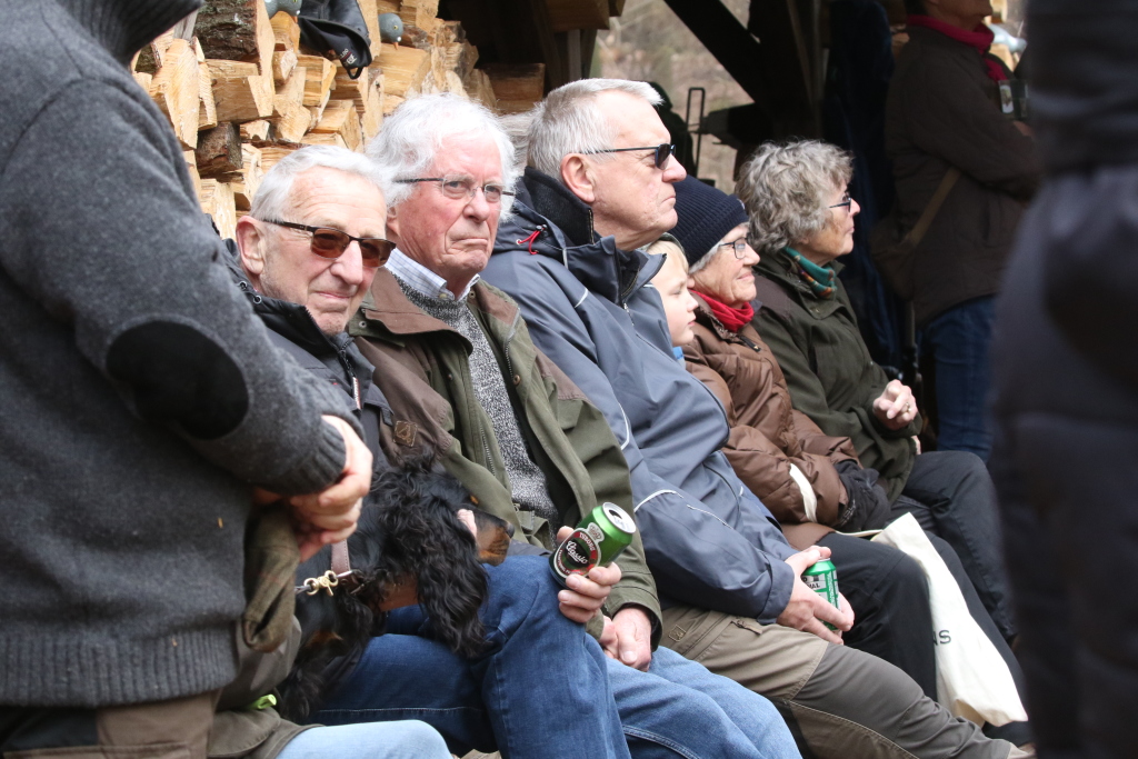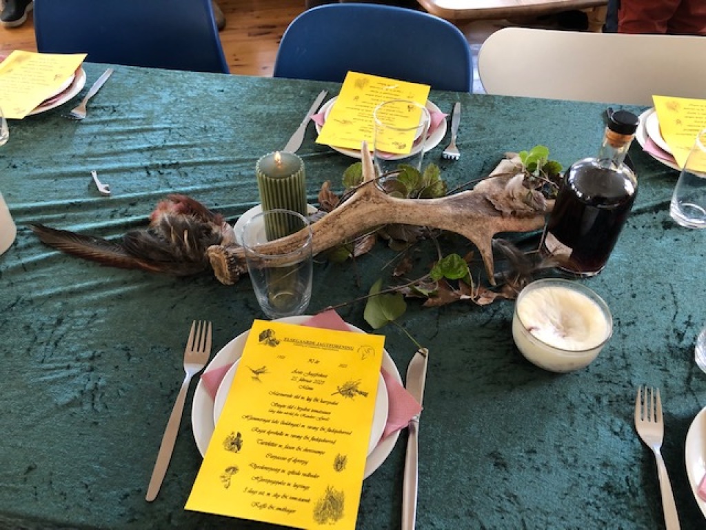 Der blev budt på "mundgodt" i form af forskellige vildtspecialiteter fra især vildsvin, kronhjort og dåvildt (samt lidt til at skylle det ned med), hvilket vakte synlig og højlydt lykke.