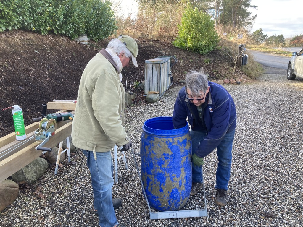Vores 3 gode jagtudvalgs- medlemmer, Klaus, K.A og Carsten, var i dag på reviret for at afterse og renovere alle foder- tønderne, som der stadig er behov for, - "for vildtets skyld" !